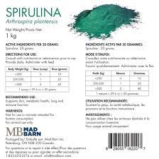 Spirulina platensis is a blue-green algae that is rich in protein, fatty acids, vitamins, and minerals. It is used to support healthy skin, a healthy metabolism, lung function and the immune system in horses. It can be used as nutritional support for horses in stressful situations like competition and high-intensity exercise. Mad Barn product. 1 kg size. Packaging is not as it appears in the picture.