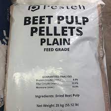 Neither of our beet pulp products contain molasses. Both are Pestell brand. Pellets are 25 kg (55 lbs) and shreds 18.14kg (40 lbs). Please call store for pricing and availability.